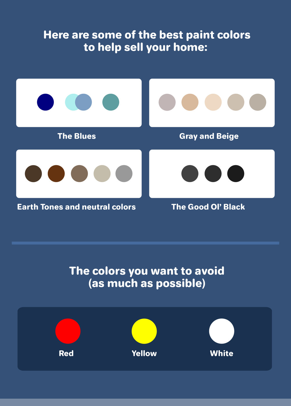 The colors that could be harmful to your home’s sale price include: