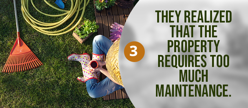 Owning a home with a huge yard is a dream for many. There’s great joy waking up in the morning and having a cup of coffee in your impeccably manicured garden. But not until the reality sinks in: tending to a house with a big yard requires so much work. And if buyers aren’t prepared to spend their weekends getting rid of overgrown weeds and removing yard waste, living in a home with too much maintenance can contribute to the disappointment in the choice of a home.